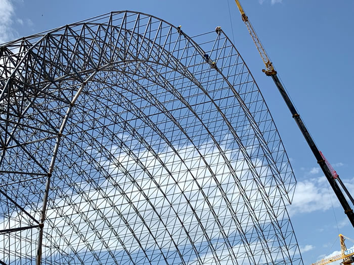 (2)网架加工前应对现场尺寸进行复测,确认无误后方可进行加工、安装;网架制作、运输、安装应遵守《空间网格结构技术规程》JGJ7-2010、《钢网架东港螺栓球节点》JG/T 10-2009、《钢网架东港螺栓球节点用高强度螺栓》 GB/T 16939-2016、《东港钢结构东港工程东港施工规范》 GB50755-2012、《东港钢结构东港工程施工质量验收标准》 GB50205-2020。